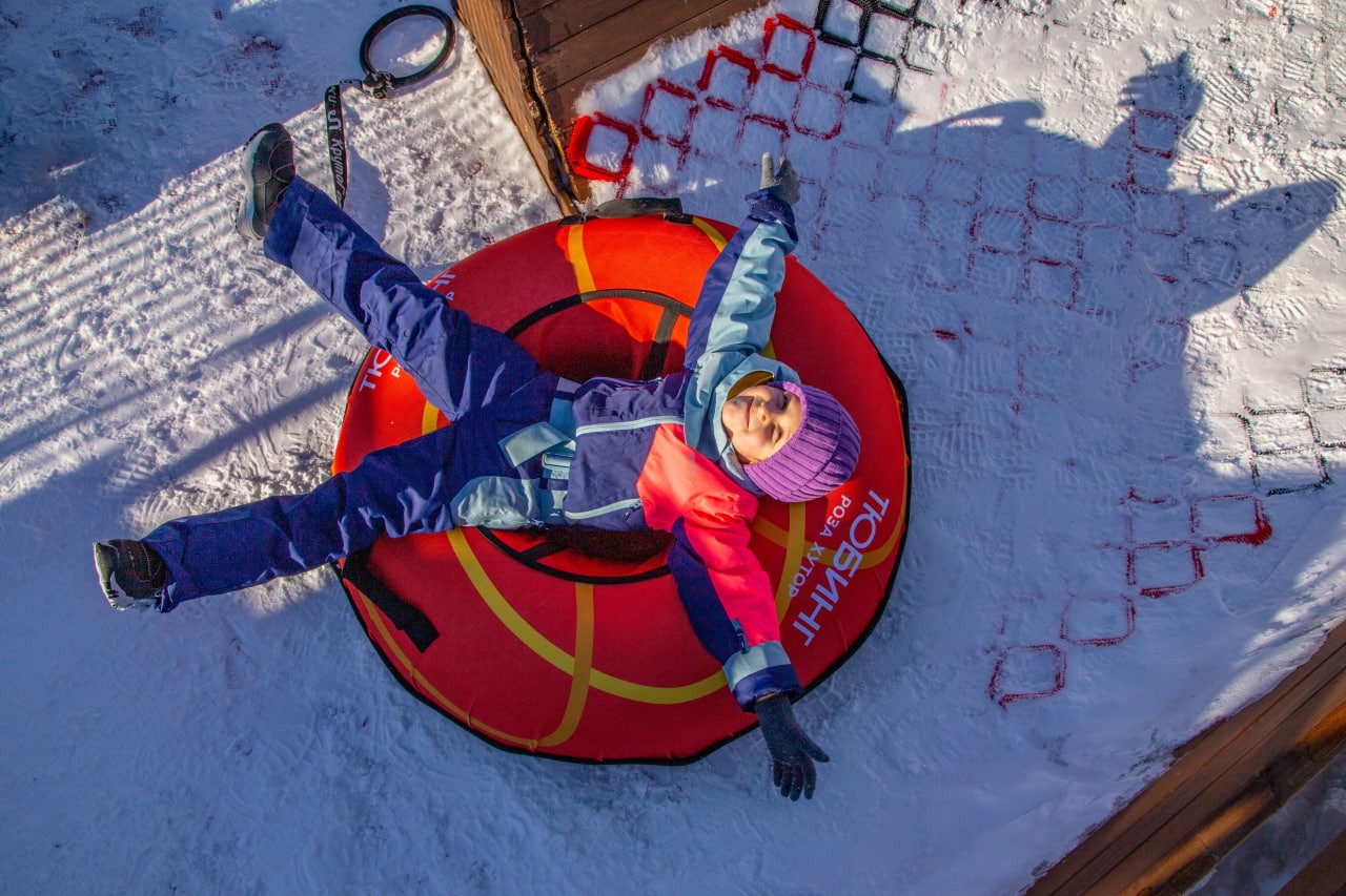 Тюбинг для детей доступен с 3 лет при соблюдении требований безопасности. Гости от 3 до 8 лет ростом не ниже 90 см могут кататься только в сопровождении взрослого в двухместной ватрушке. Максимальная нагрузка такого тюбинга диаметром 1300 мм — 140 кг.