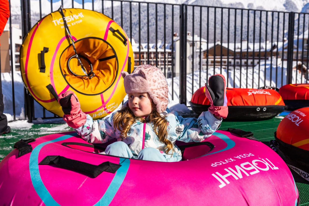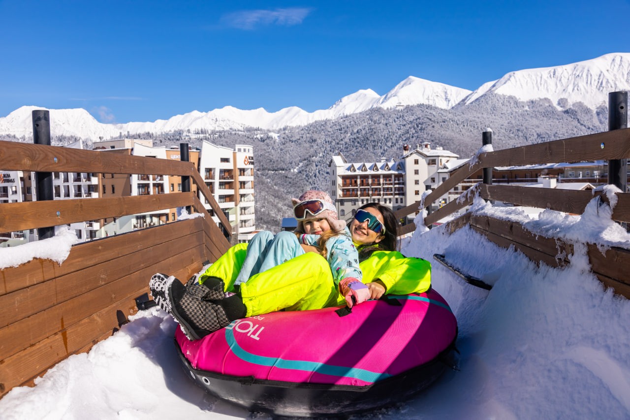 Кататься на ватрушках — одно из самых веселых зимних развлечений на курорте Роза Хутор. В Горной Олимпийской деревне для этого подготовлены специальные трассы на высоте 1100 м. Ощутите драйв от скорости и прилива адреналина — без сложной технической подготовки.