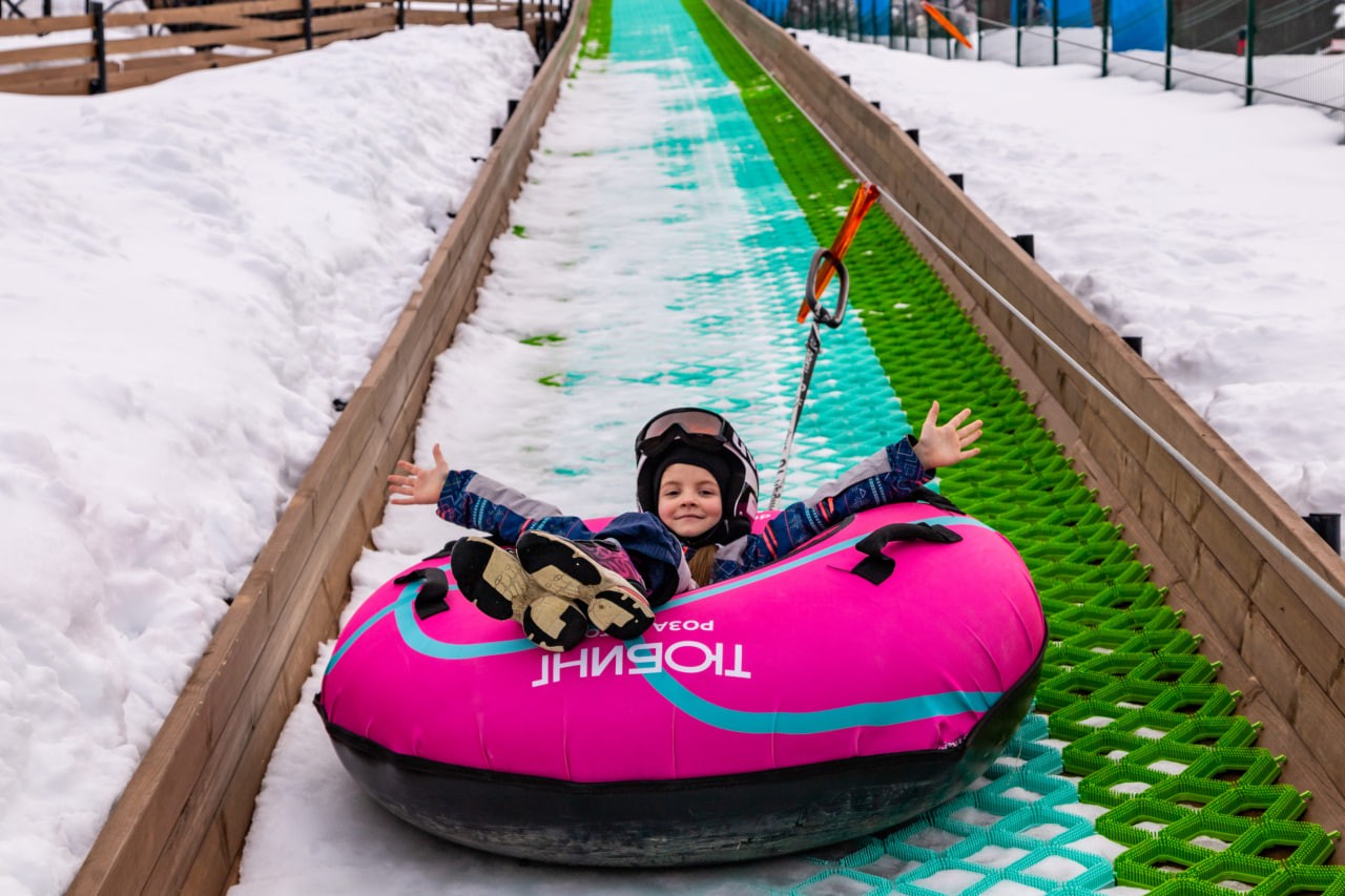 Недалеко от зоны катания находится детская площадка с бесплатной тюбинг-каруселью для малышей до 6 лет.