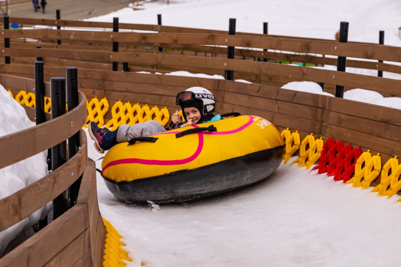 Прокат тюбингов и защитных шлемов включен в стоимость абонемента. Его можно приобрести в кассе рядом с трассами.