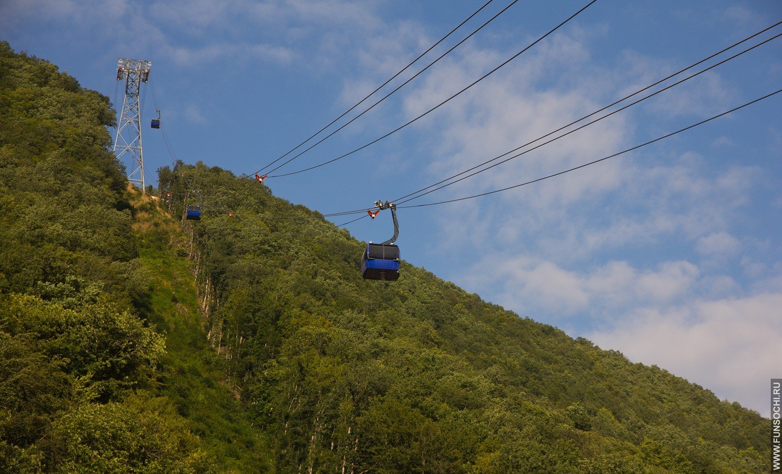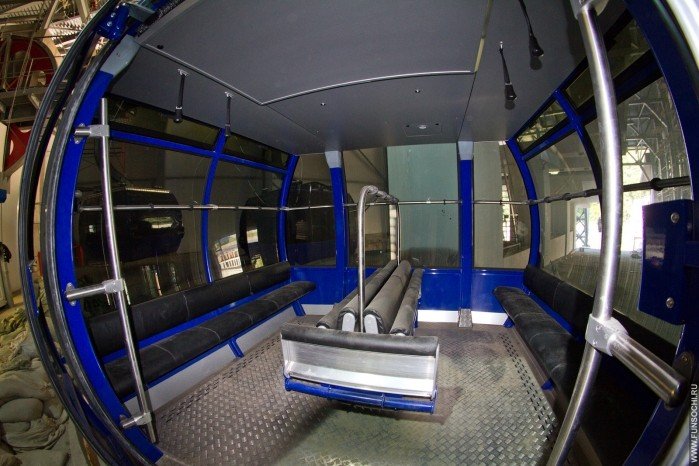 В этом типе канатных дорог кабинки подвешены не на одном, а сразу на трех канатах.
